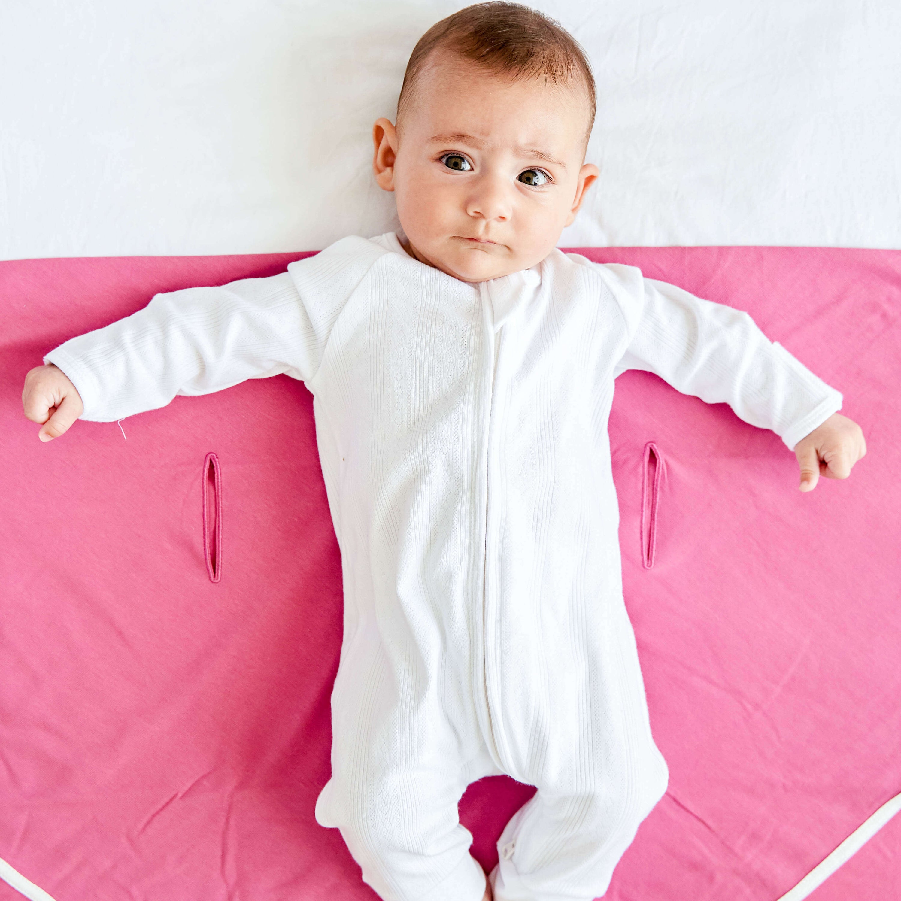 Our 2-in-1 swaddle lets you choose whether to snuggle your baby with their arms up or down, letting them self-soothe in their preferred way.